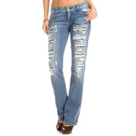 Low rise Slim fit Bootcut Tear and repair detail 33 1/2" inseam 98% cotton, 2% elastane Machine wash.